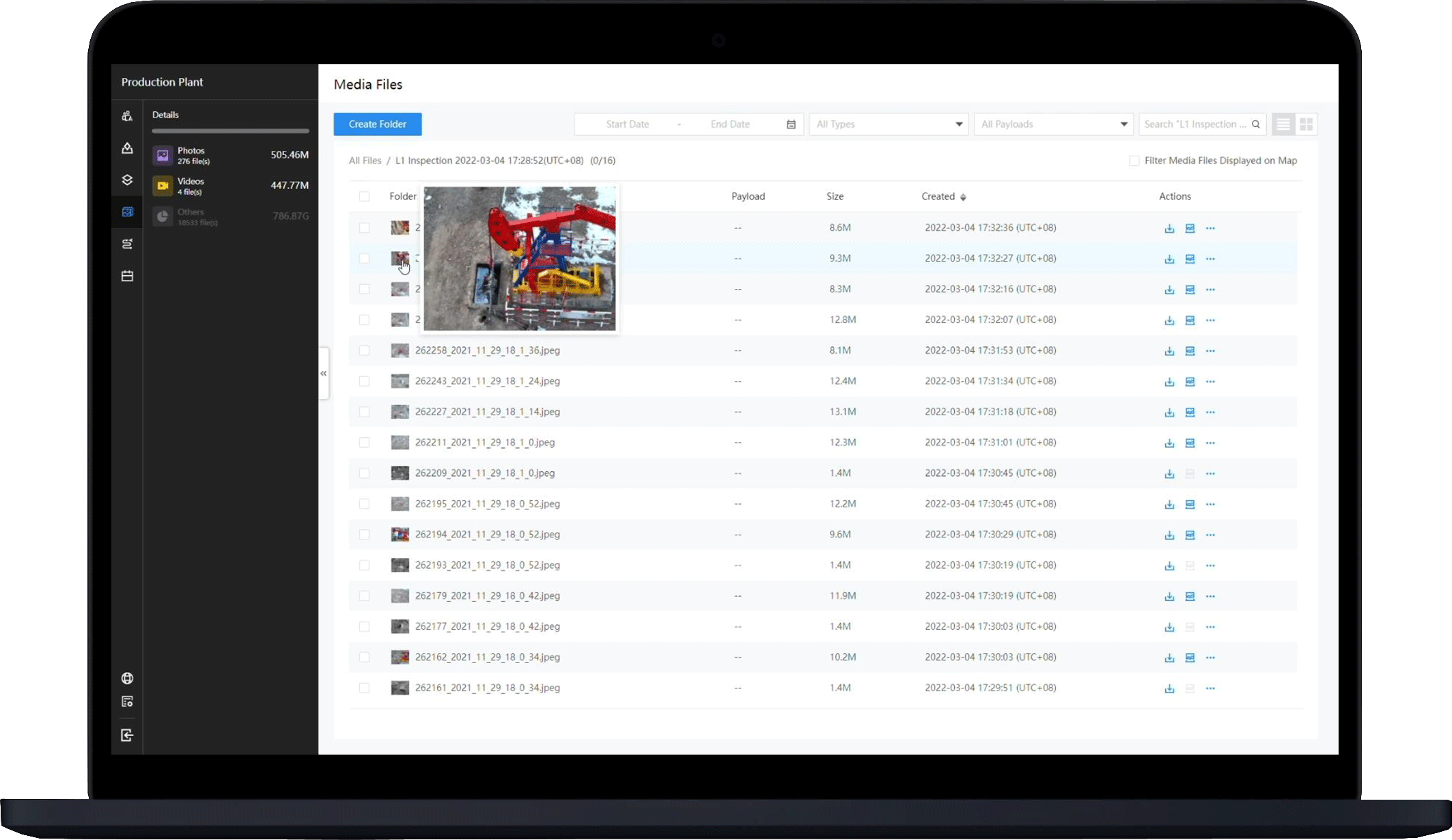 Review the geo-tagged pictures, videos, maps, and panoramas collected by your drones. Data collected by your drones can be automatically uploaded and stored for later use.