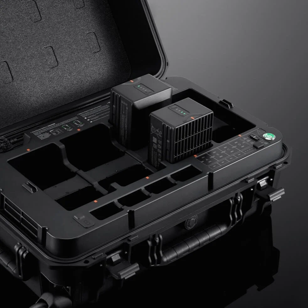 The battery station provides a one-stop solution for battery charging, storage, and transport. The new Storage Mode and Ready-to-Fly Mode improve charging efficiency and extend the battery life. The new design of 360°-movement wheels facilitates more convenient transportation and transitions.
