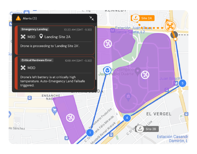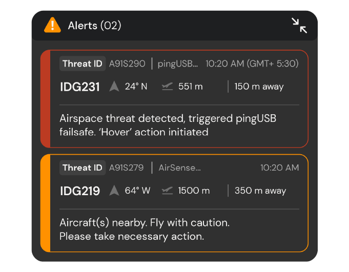 Instantly detect intrusions on the FlytBase dashboard with real-time data on intrusive aircraft, including live telemetry and location.